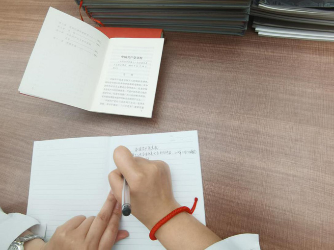 最后,全體與會(huì)人員一起手抄中國共產(chǎn)黨章程,以加強(qiáng)自我意識(shí),增強(qiáng)黨史記憶。