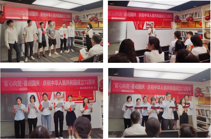 一曲激昂的《義勇軍進(jìn)行曲》拉開(kāi)活動(dòng)帷幕。1949年10月1日,毛澤東同志在開(kāi)國(guó)大典上親自按下電鈕,新中國(guó)第一面五星紅旗冉冉升起。我們永遠(yuǎn)銘記10月1日,這是中華人民共和國(guó)成立的日子,也是無(wú)數(shù)先烈們用犧牲和奉獻(xiàn)換來(lái)的日子,是他們的不懈努力開(kāi)創(chuàng)了中華民族的新紀(jì)元,也創(chuàng)造了屬于我們自己的美好幸福新生活。全體易達(dá)人共唱國(guó)歌,用歌聲表達(dá)對(duì)所有革命先烈的緬懷之情。
