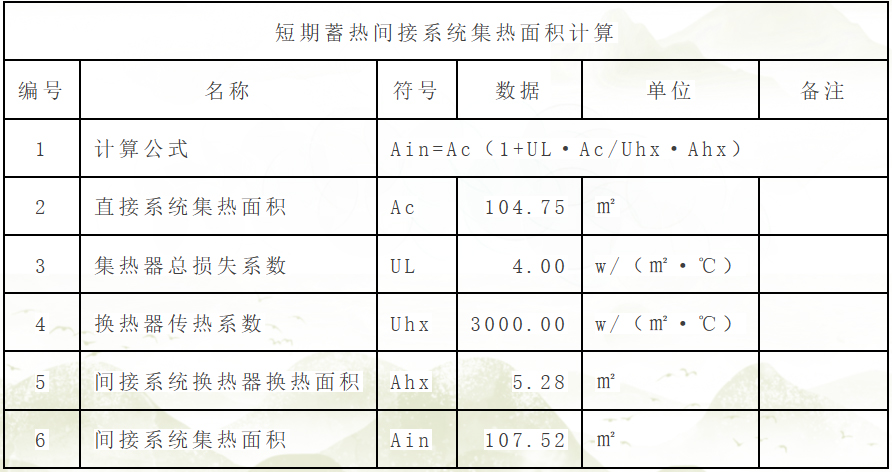 根據(jù)直接系統(tǒng)集熱面積計(jì)算間接系統(tǒng)集熱面積如下: